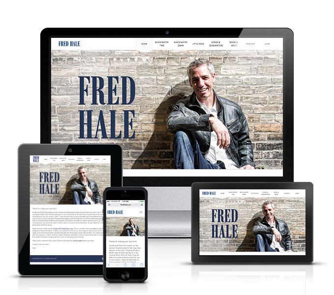 Musician Fred Hale needed a website to promote his bands and music to an audience. Each of the eight pages features a large full-width header image for visual impact. The site also includes an audio player, YouTube Video, an upcoming events feature and a contact form. Fred needed the ability to update his content himself, so I integrated a personalized content management system for him that is streamlined and easy to use.