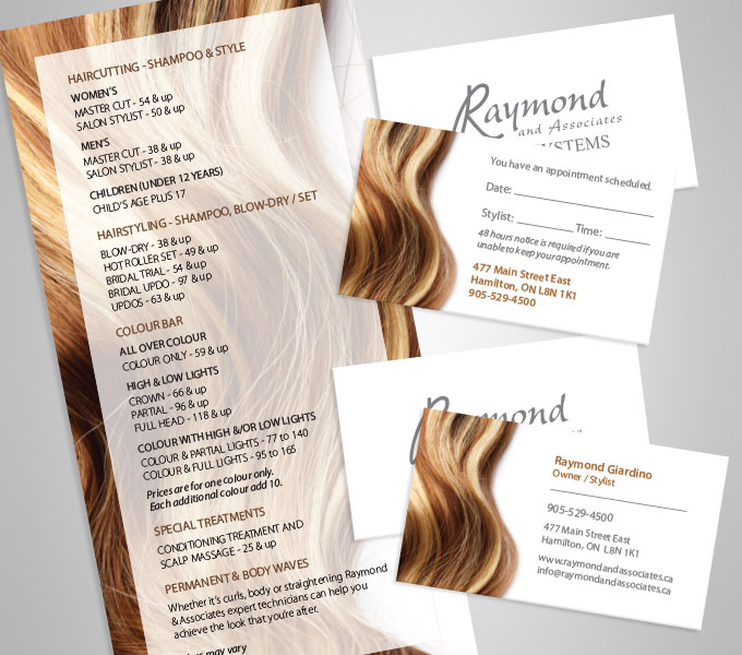 Further to the website, Raymond required new business, appointment and price list cards. I designed these to complement the overall look and feel of the website.